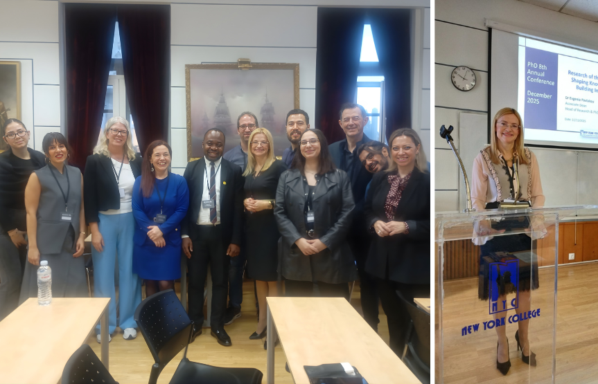 Με επιτυχία ολοκληρώθηκε το 8ο Annual PhD Conference του New York College, στο οποίο παρουσιάστηκαν ερευνητικές εργασίες από φοιτητές διδακτορικών προγραμμάτων του συνεργαζόμενου κρατικού βρετανικού πανεπιστημίου University of Greater Manchester, στις εγκαταστάσεις του NYC Athens Campus στις 11 &12 Δεκεμβρίου 2025